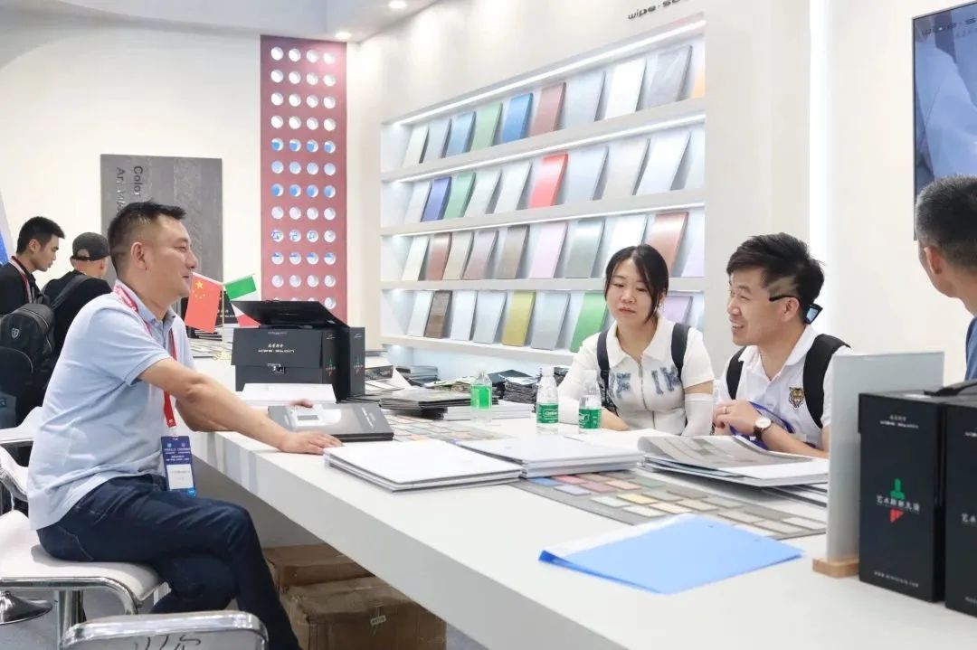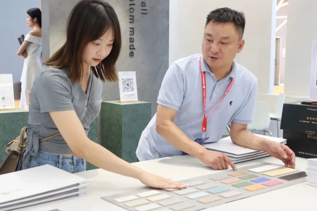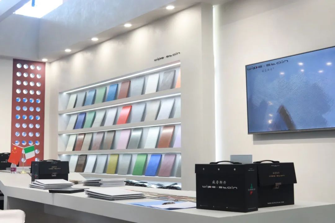 開展首日,WIPESTAIN威普斯丹意大利原裝進口藝術(shù)涂料展位(廣交會展館B區(qū)9.3館17號)吸引了眾多參展者的駐足,現(xiàn)場人流如織。